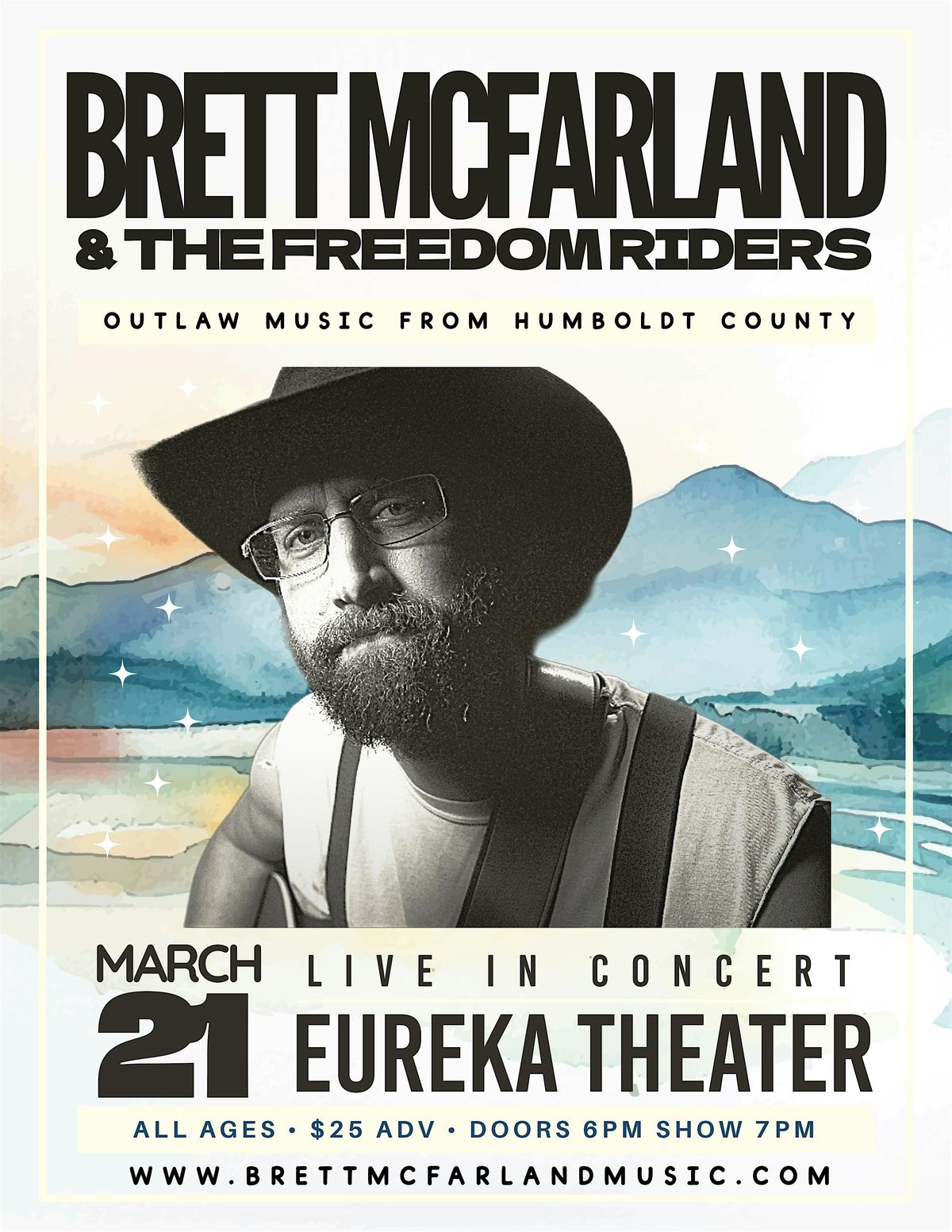 Brett McFarland & The Freedom Riders are coming back home - ALL AGES - for a full-band takeover at the Eureka Theater on March 21!