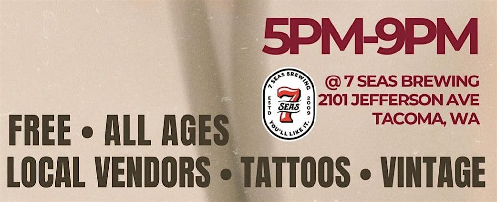 Find local vendors at 7 Seas Brewery across from UW Tacoma on the third Thursday night of the month, 5-9pm. 🍻 Street parking extends around the area or there is a free gravel lot across from the street from the front door of the warehouse-like building.