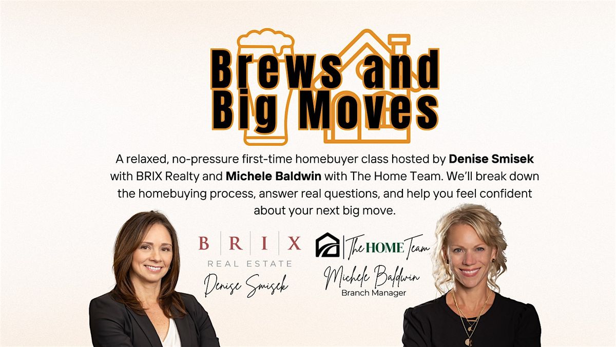 A relaxed, no-pressure first-time homebuyer class hosted by Denise Smisek with BRIX Realty and Michele Baldwin with The Home Team. We’ll break down the homebuying process, answer real questions, and help you feel confident about your next big move.