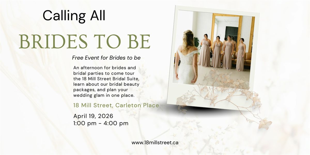 Join us for a Brides to Be Open House at 18 Mill Street — a free event created for brides and their bridal parties to explore our elegant bridal suite and meet incredible local wedding vendors.