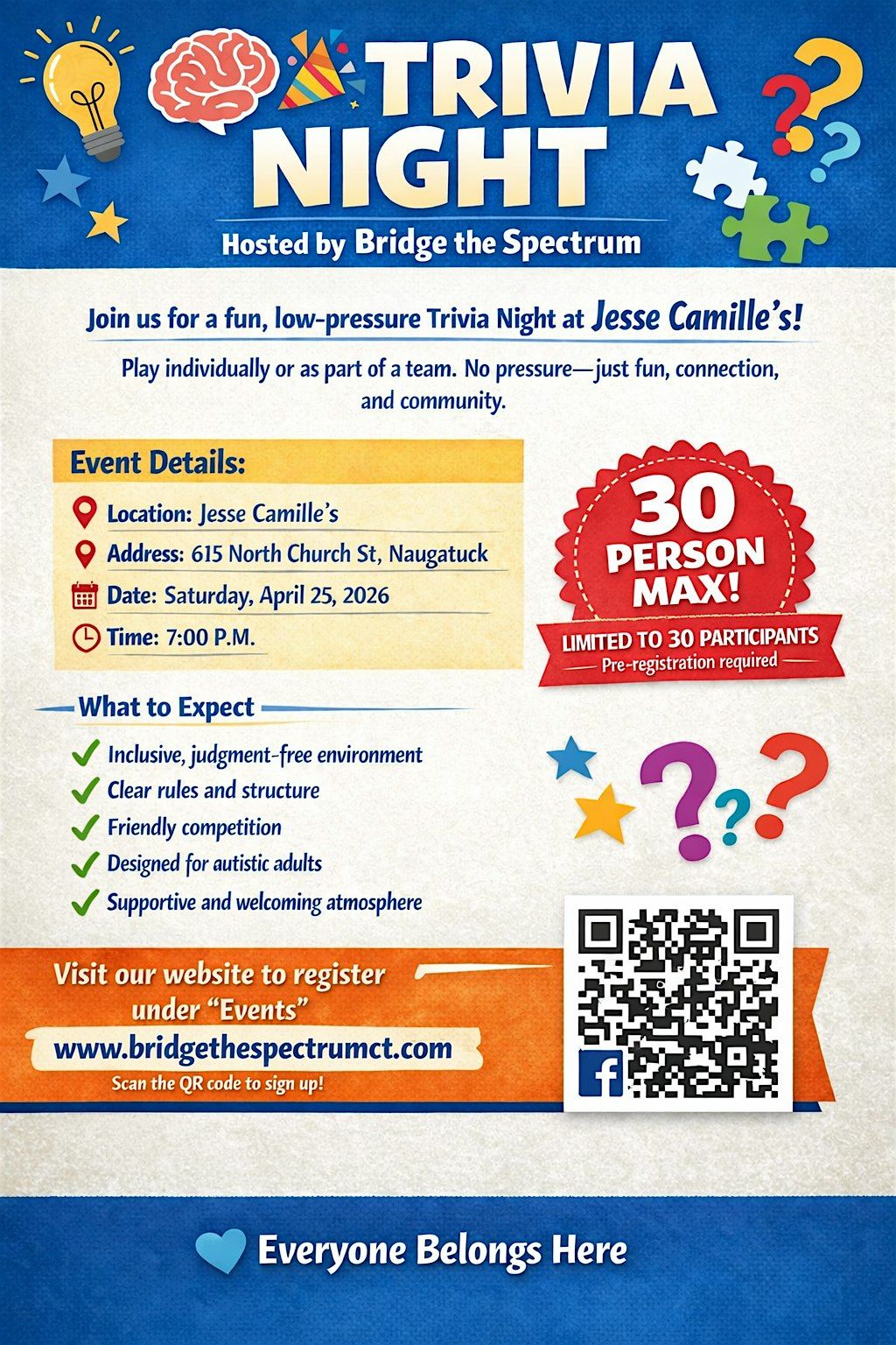 Bridge the Spectrum invites autistic adults to a fun, low-pressure trivia night designed for connection, laughter, and community.