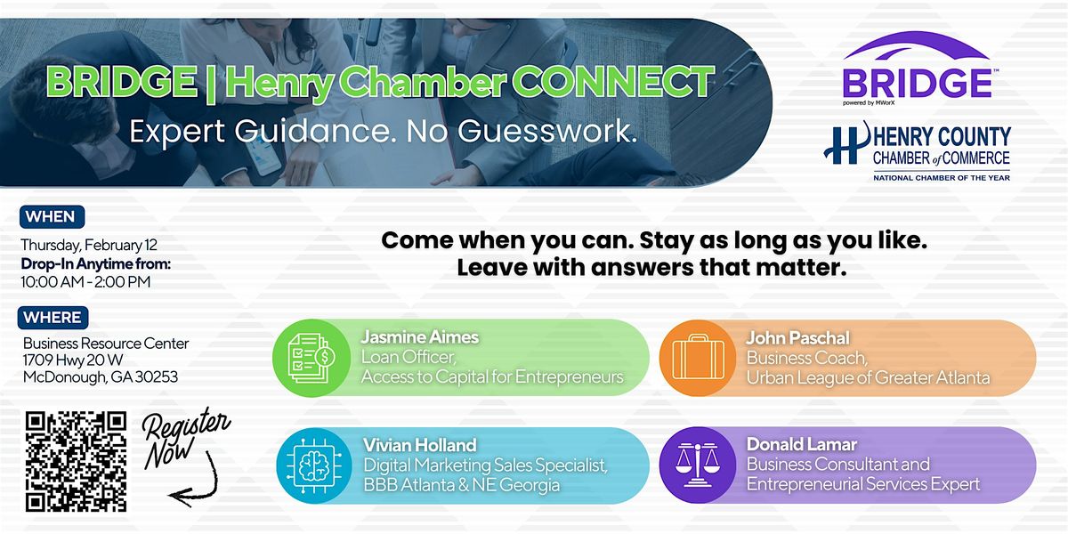 This event takes place in the small business resource center at the Henry County Chamber. Past attendees have said "I had no idea I'd get this level of guidance!" and "Wow, Donald was so insightful! He really helped me see how to go forward with my business."
