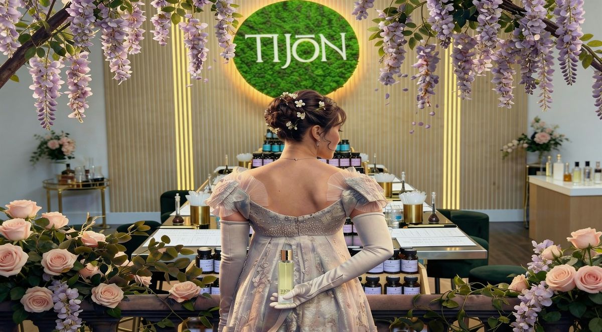 You are cordially invited to the Bridgerton Spring Perfume Making Party at Tijon Fragrance Lab, where esteemed guests shall gather to celebrate the first blossoms of spring in the most elegant fashion.