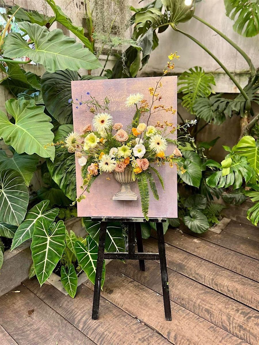 This luxe-level floral workshop invites guests to create a three-dimensional floral still life — a sculptural arrangement designed to feel like a living portrait. Drawing inspiration from Regency-era paintings, masquerade balls, and grand floral displays, this experience is immersive, expressive, and unapologetically beautiful.