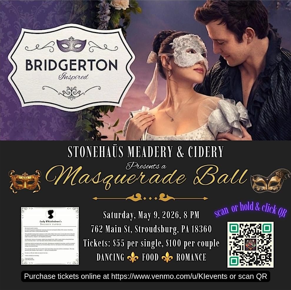 Step into a Bridgerton-inspired Masquerade Ball filled with elegance, masks, DJ music, petite bites, drink specials, dancing & unforgettable fun. Dress to impress!
