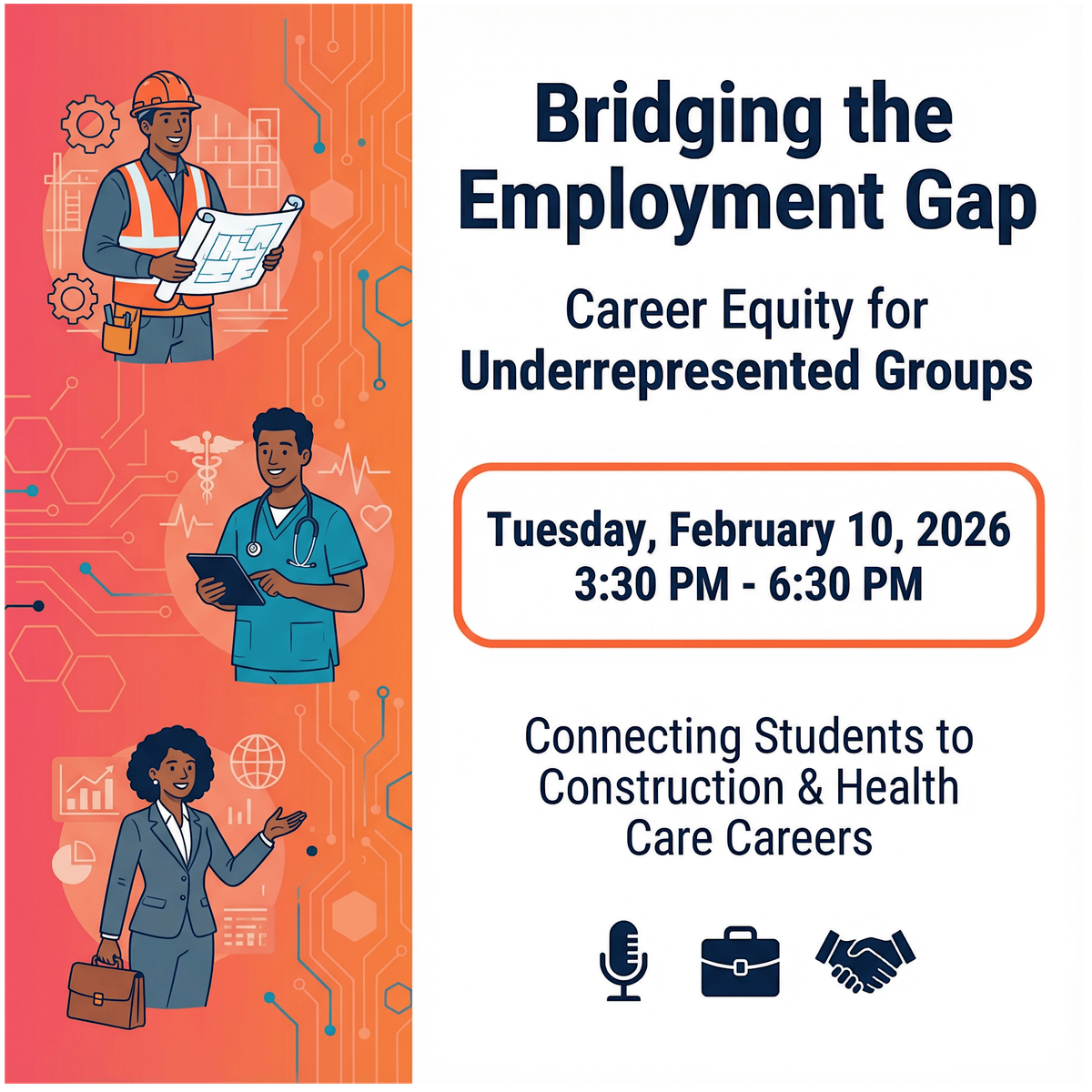 Join us for a transformative event connecting students to workforce opportunities in Construction and Health Care.