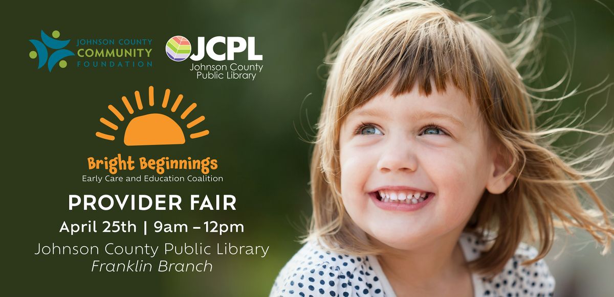 Bright Beginnings, an initiative of the Johnson County Community Foundation (JCCF), in partnership with Johnson County Public Library (JCPL), is hosting an Early Care & Education Provider Fair you won’t want to miss!