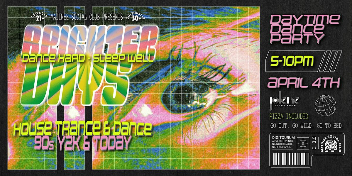 Calling all house heads, rave kids, and dance music lovers: relive the time when the dance floor was at its purest. Brighter Days is Matinee's homage to the foundational house, trance, and dance music scenes of the 90s & 00s from NYC to Chicago to Ibiza. Matinee is taking over Brooklyn's best venues, featuring award-winning sound systems, to bring back the hypnotic sounds that once lit up dance floors at Limelight and Amnesia.