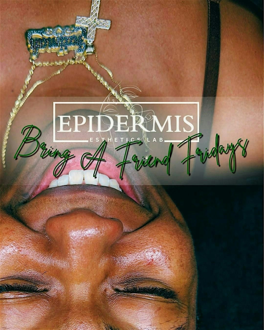 Welcome to Bring A Friend Fridays-Facials and Mimosa's at Epidermis Esthetics Lab! Join us EVERY FRIDAY 10:00 AM-5PM for a relaxing day of pampering and fun. Treat yourself to a rejuvenating facial while sipping on delicious mimosas with your friends.