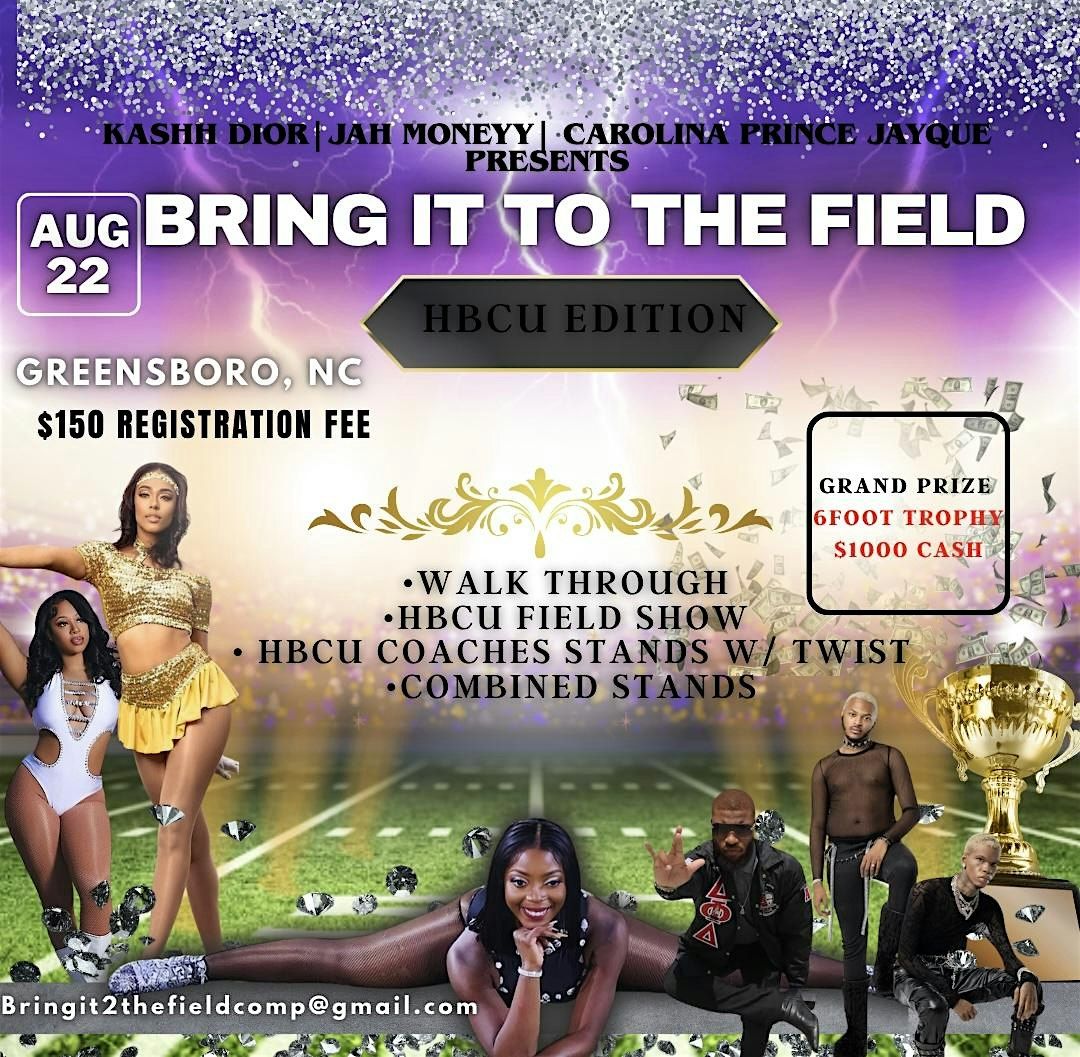 Bring It To The Field: HBCU Edition 2026 is a high-energy majorette dance competition designed to showcase the power, precision, and creativity of HBCU-style performance. Taking place in Greensboro, North Carolina on August 22, 2026, this event brings together talented teams from across the region to compete in multiple categories, including field show and walk-through.