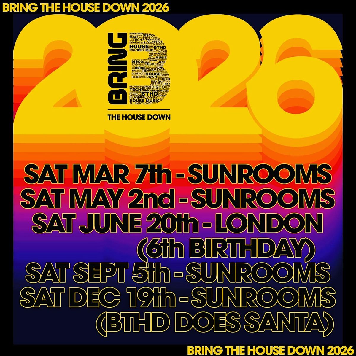 The 'Bring the HOUSE down' music policy will include everything from Disco, Soulful, Funky, Deep, Jackin and good quality full on HOUSE music.