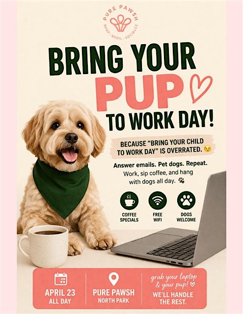 Join us at Pure Pawsh for Bring Your Pup to Work Day on April 23rd (ALL DAY!)