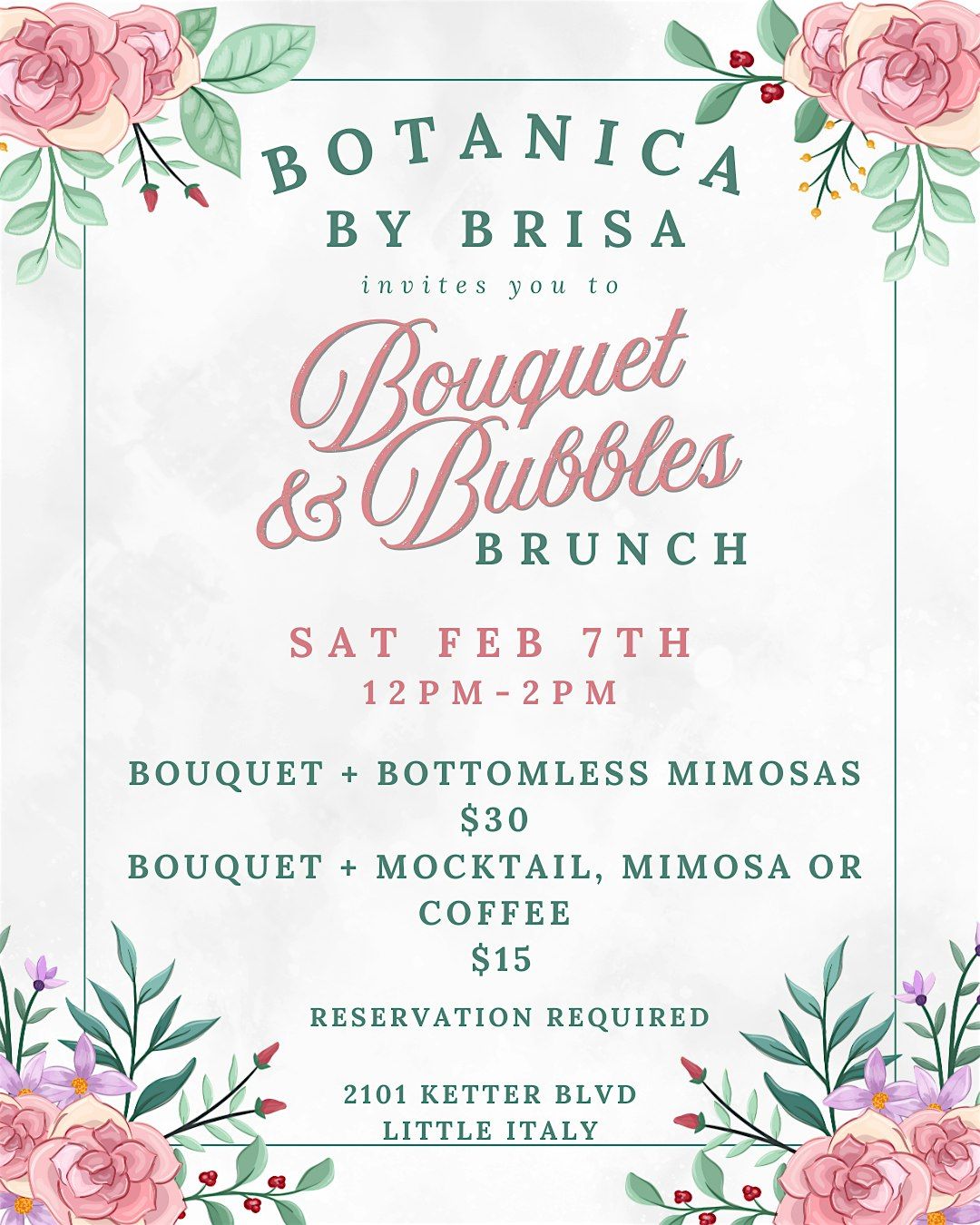 🥂 Reservations required to guarantee bouquet supplies