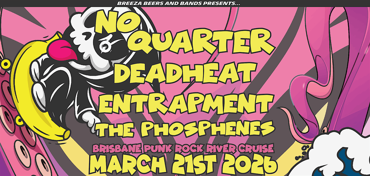 Been a while since No Quarter done a non-fest show in Brissy! So let's fix it with a banging line up on a Brisbane River Boat Cruise!! No Quarter, Deadheat, Entrapment and The Phosphenes!