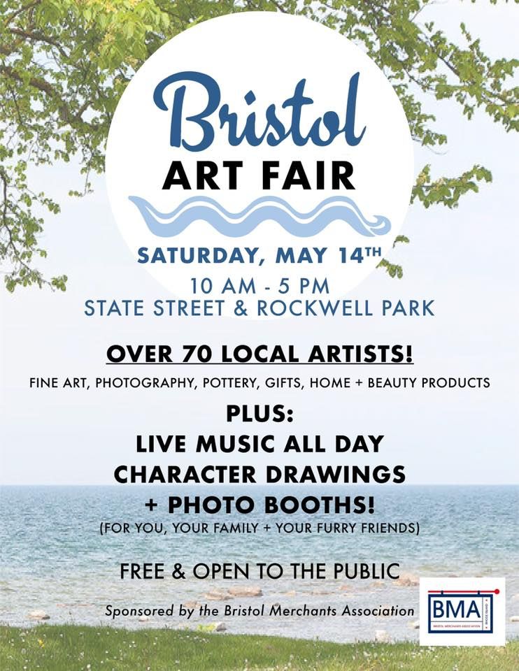 Join us on Saturday, May 14th for the Bristol Art Fair in historic downtown Bristol. Hosting 70+ local artists on both Lower State Street and in Rockwell Park off Thames Street, stroll among fine art, photography, pottery, gifts, home & beauty products, pet products & more!Live music will be playing all day at the foot of State Street. Our musician lineup is as follows: