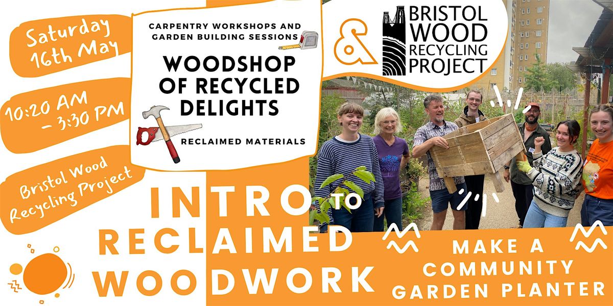 Come along to the Woodshop of Recycled Delights' and Bristol Wood Recycling Project's 'Intro to Reclaimed Woodworking' Workshop where you will learn how to use hand and power tools to build with reclaimed wood! Perfect for total beginners!