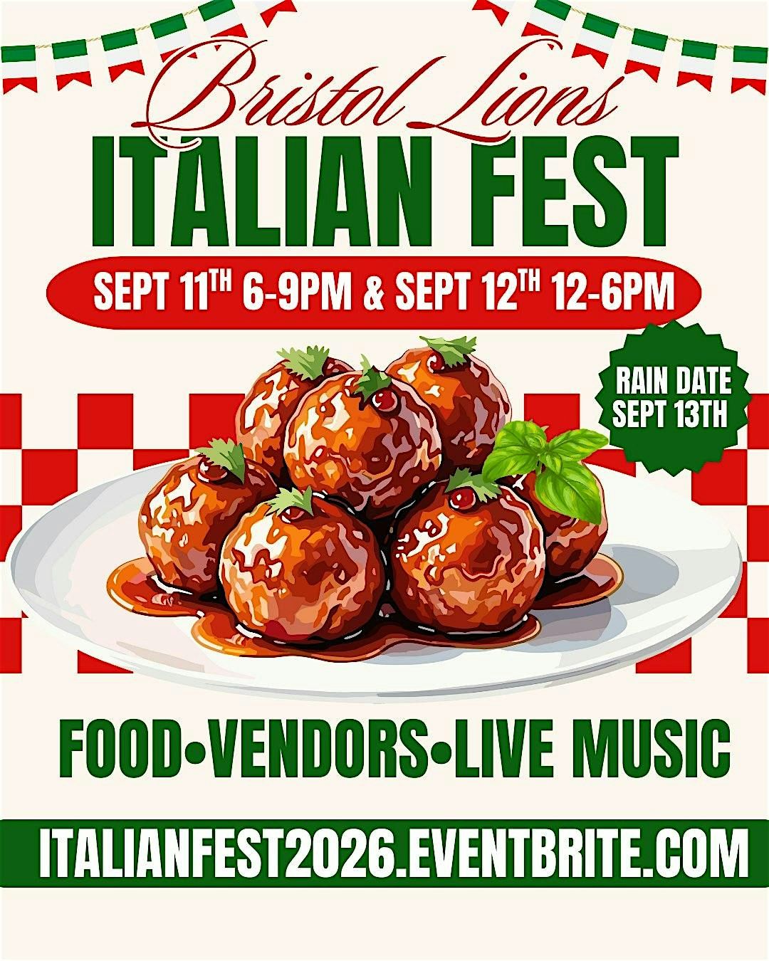 Welcome to the Bristol Italian Fest Day 2 at Bristol Wharf! Get ready for a day filled with delicious food, lively music, and vibrant cultural performances. Join us on September 12, 2026 at 12:00 PM (Eastern Time) to experience the best of Italian cuisine and traditions. Don't miss out on this exciting event!