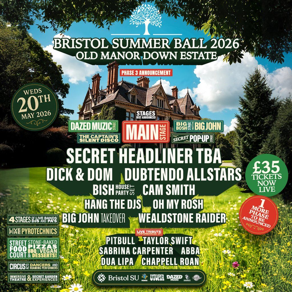 Now in its 4th unforgettable year, Bristol Summer Ball returns to one of the most breathtaking manor estates in the South West - Old Down Estate!Music Genres : Cheesy Dance, Disco, House, Pop, UK Garage