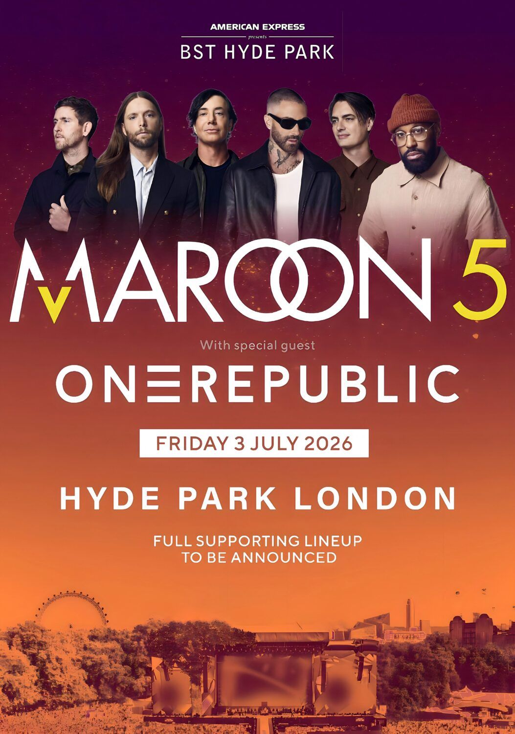 Maroon 5 at Hyde Park✨ Experience the magic of British Summer Time Hyde Park - Maroon 5 Tickets, where moments become memories that last a lifetime! 🏛️ The iconic Hyde Park in London, EN sets the perfect stage for an unforgettable celebration on July 3rd, 2026 at 02:00 PM. 🌟 It's been a curated experience that brings together the best of entertainment and innovation, creating an atmosphere of wonder and excitement. From the moment you arrive, you'll be immersed in a world where the ordinary transforms into the extraordinary. 🎫 Get your tickets at 133.16 EUR. 🎊 Book early to secure your place in what promises to be an event that will be talked about for years to come!