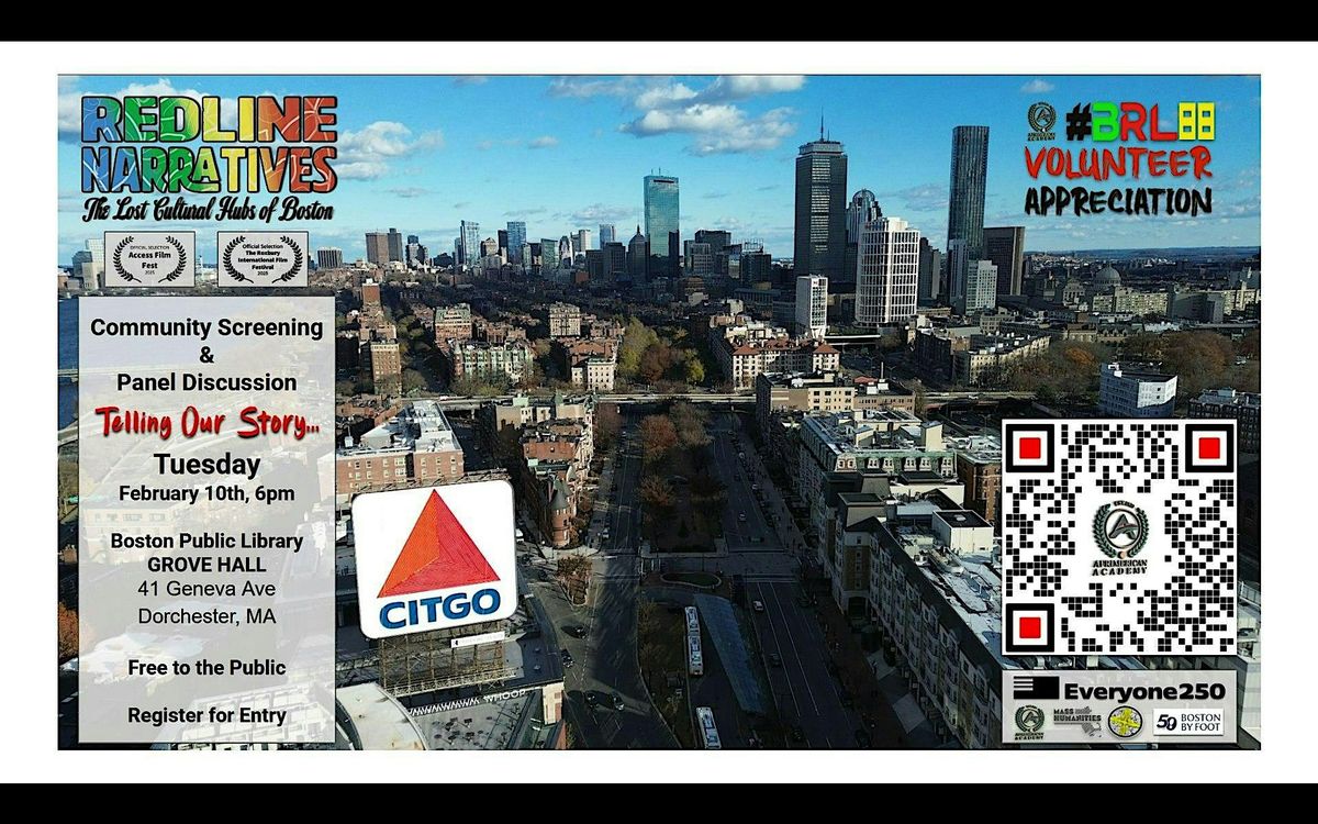 This event is part of Boston Redline 88 (BRL88), produced by the Afrimerican Academy / Afrimerican Culture Initiative Inc., with gratitude to our partners Mass Humanities, Segregation By Design, Boston By Foot, and Everyone250.