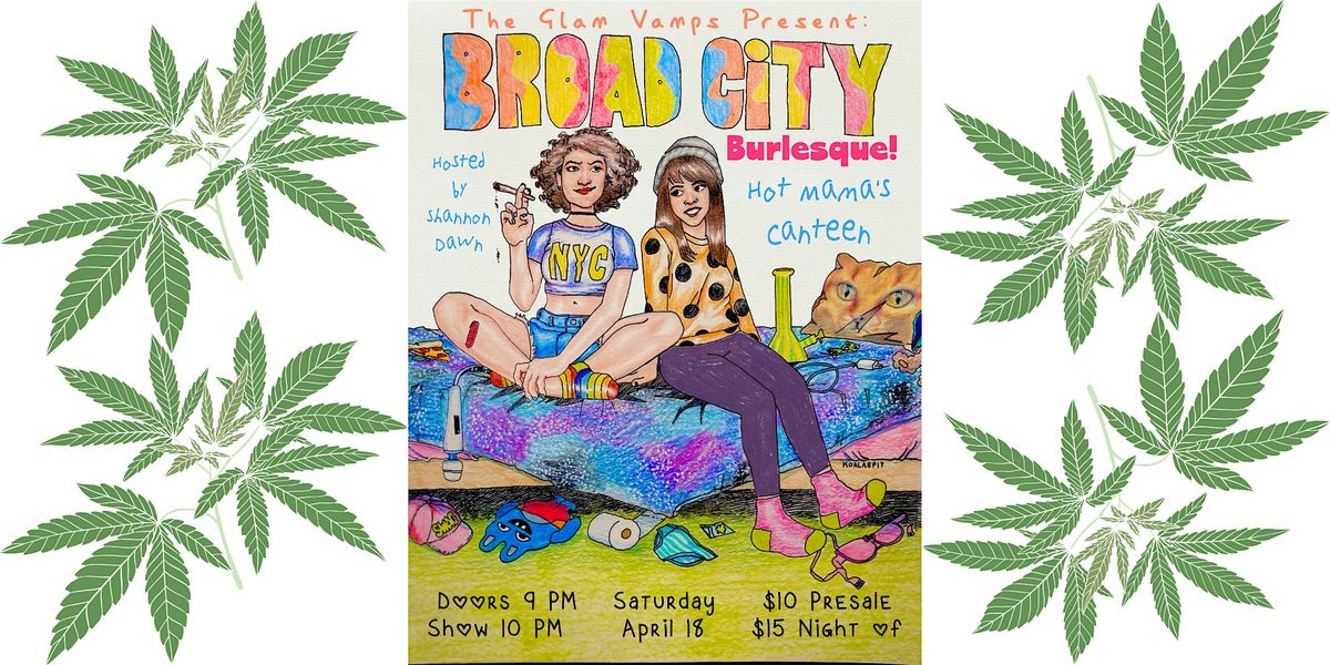Join us for a night full of sass, sparkle, and serious talent at Broad City Burlesque on Saturday, April 18 at Hot Mama's Canteen for The Glam Vamps' annual 420 Show!!! This isn't your average show—expect jaw-dropping performances, cheeky humor, and vibes that’ll keep you smiling all night long.