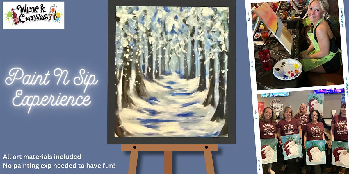 🎨❄️Join us at Condado Taco for a relaxing Broad Ripple Art and Wine Night as we paint “Winter Woods.” It is a peaceful snowy pathway surrounded by frost-kissed trees and soft shades of blue and white.