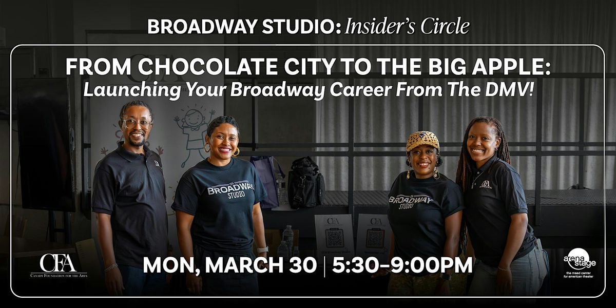 In partnership with Arena Stage, the Canady Foundation for the Arts (CFA) launches its first Broadway Studio: Insider’s Circle program. Hosted by Tony-Nominated Producer and CFA Founder: Marjuan Canady, this series provides students, emerging and mid-career artists, and the larger public with firsthand insights into the world of Broadway, covering topics such as performance, business, process, management, production, design, industry pathways, and representation.Through riveting, transparent discussions, community engagement, behind-the-scenes stories, and Q&A sessions in an intimate setting with accomplished Broadway professionals who have excelled in performance, management, marketing, production, and creative design. On March 30th, Marjuan and our Broadway Industry Speakers will share their unfiltered experiences on how they built their career paths to Broadway. Join us at Arena Stage to witness “From Chocolate City to The Big Apple: Launching Your Broadway Career from the DMV!”