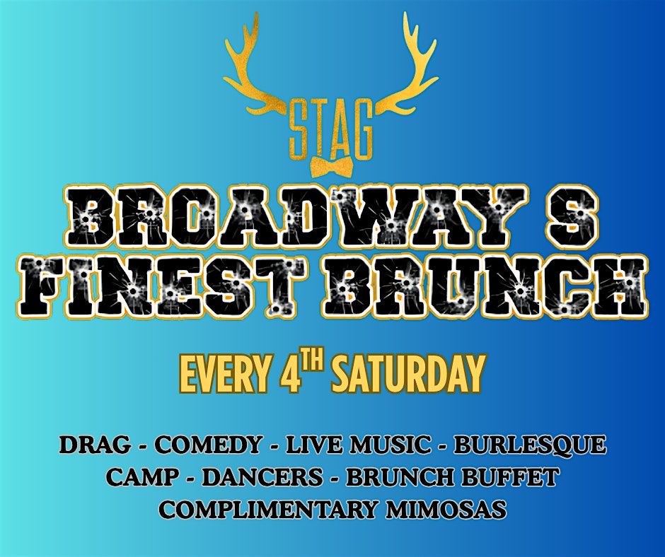 BROADWAY'S FINEST Drag Brunch is the ultimate combination of fabulous drag performances and delicious brunch at Stag PDX. Join us for a spectacular event filled with amazing entertainment and mouth-watering food. Get ready to be dazzled by talented drag performers bringing Broadway's Finest to life right before your eyes - from your host Kherry O'Kay through to her special guests, you won't be disappointed. Combining Drag, Comedy, Live Music, Burlesque and our (in)famous Exotic Dancers, you won't want to miss out on this unique experience that promises to be a show-stopping good time! Tickets include one complimentary mimosa and all you can eat buffet with gluten free and vegan options available. 21+ only.