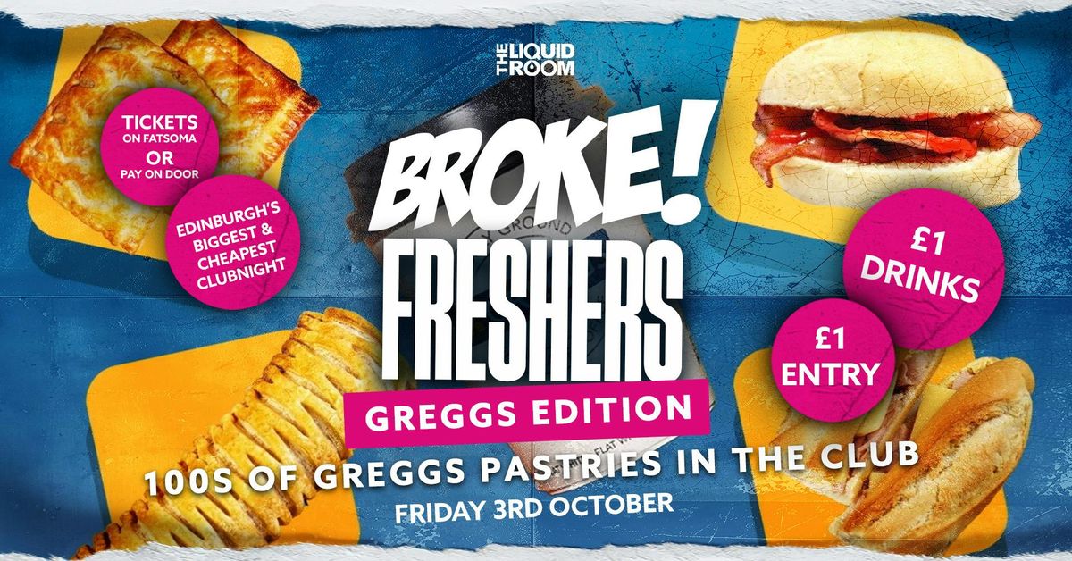 BROKE! FRIDAYS AT THE LIQUID ROOM | 1,500 PEOPLE | £1 DRINKS🐷 FABULOUSLY, ARROGANTLY, UNRESERVEDLY and INDISPUTABLY EDINBURGH'S BEST AND BIGGEST CLUB NIGHT 15 YEARS ON THE TROT. 📍 THE LIQUID ROOM, EDINBURGH, 9C VICTORIA STREET, EH1 2HE🔥 ALL UNIVERSITIES ARE WELCOME TO OUR EVENTS. EVENTS ARE NOT RESTRICTED TO THE TITLED UNIVERSITY.