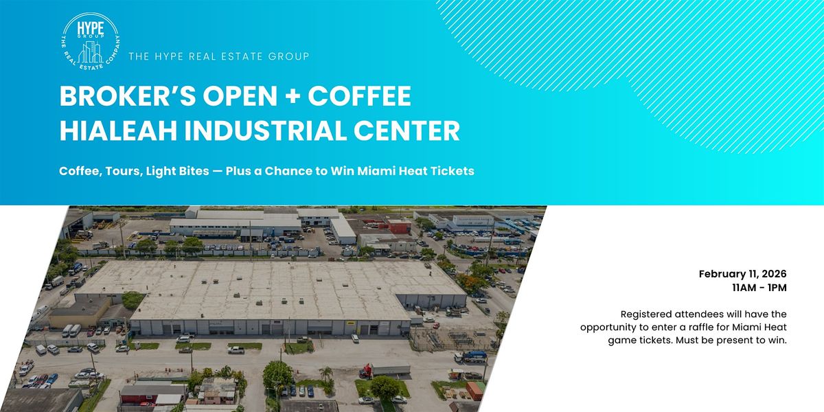 Join The Hype Group for a morning broker's open featuring coffee, light bites, and on-site tours of current industrial availabilities at Hialeah Industrial Center. This event is designed for brokers seeking quality inventory in a central Hialeah location.