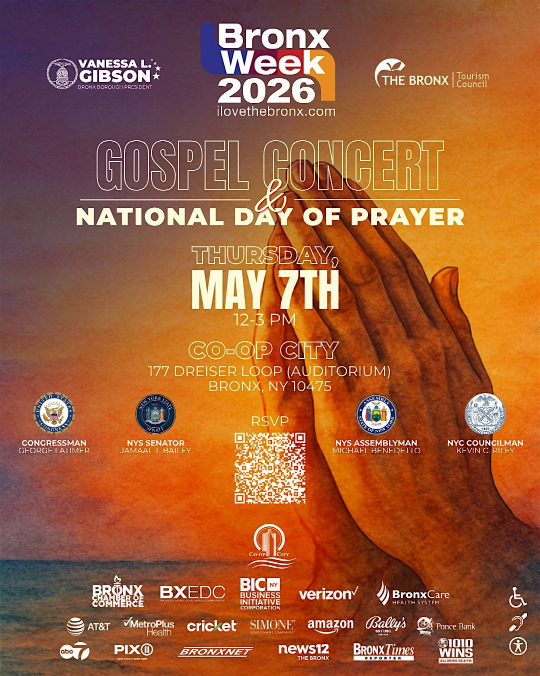 Join us on Thursday, May 7th, from 12:00 PM to 3:00 PM for an unforgettable afternoon of soul‑stirring music and inspiring performances at the Bronx Borough President’s Gospel Concert in recognition of the National Day of Prayer.