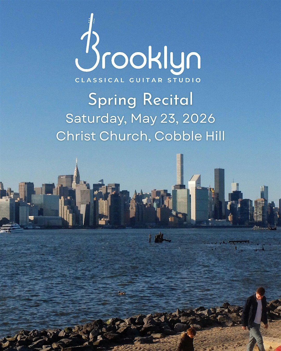 Welcome to the Brooklyn Classical Guitar Studio Spring Recital 2026! Join us for an afternoon of beautiful classical guitar music performed by the talented students of Matt Kaplan. The event will take place at Christ Church, Cobble Hill, home to the Brooklyn Classical Guitar Society's events and concerts. It's an amazing space and the guitar sounds incredible in there! Come support our musicians as they showcase their hard work and love for the classical guitar. Thanks for your support!