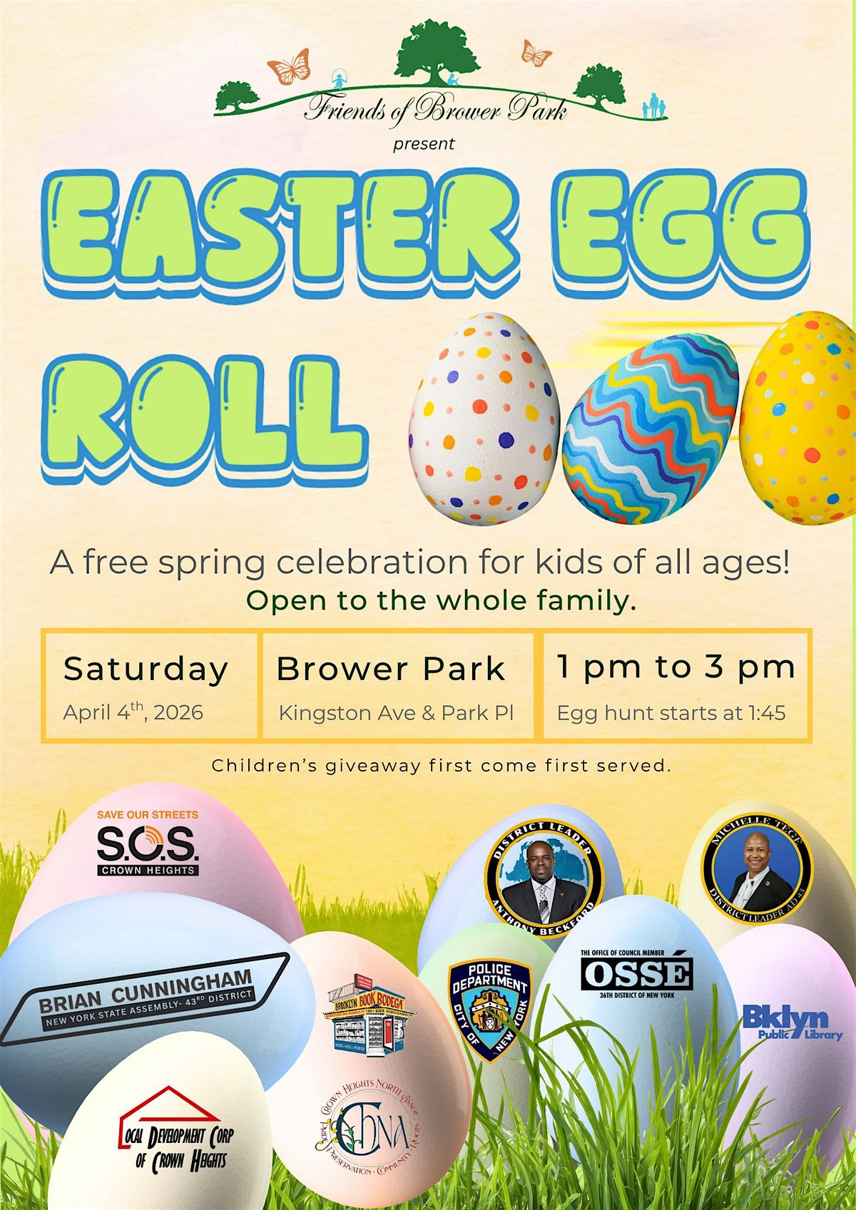Get ready for some egg-citement at the Brower Park Easter Egg Hunt 2026! Join us in person for a fun afternoon filled with egg hunting, laughs, and amazing memories. Perfect for kiddos and the whole family to enjoy the outdoors and celebrate spring together. BRING YOUR BASKETS and your smiles - the Easter Bunny will hop through for photo opportunities! This event is FREE but all goodies and giveaways are on a first come, first served basis, while supplies last.