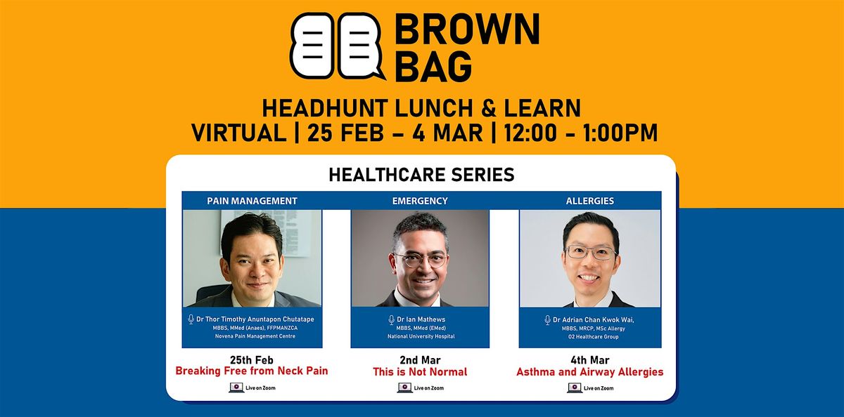 For our Pain Management Brown Bag session, Dr Thor will be sharing practical insights on identifying the root causes of neck pain, effective management strategies, and preventive approaches tailored for modern, desk-bound lifestyles.