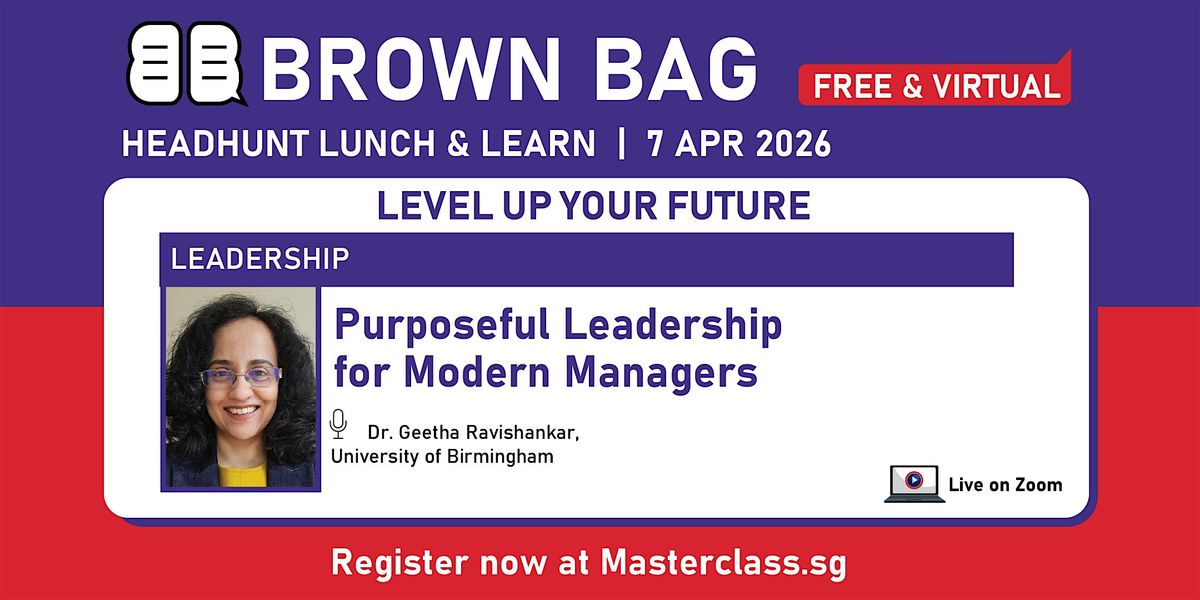 For our Brown Bag Session on 7th Apr, Dr. Geetha Ravishankar from University of Birmingham will be speaking on the topic of Purposeful Leadership for Modern Managers.