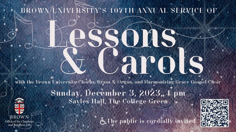 This event is HYBRID. It will be held in-person and live-streamed. In advance of this year’s concert a link to a Livestream of the Service will be made available (TBA). For more information vist out events link here: https://events.brown.edu/event/lessons-and-carols-2023