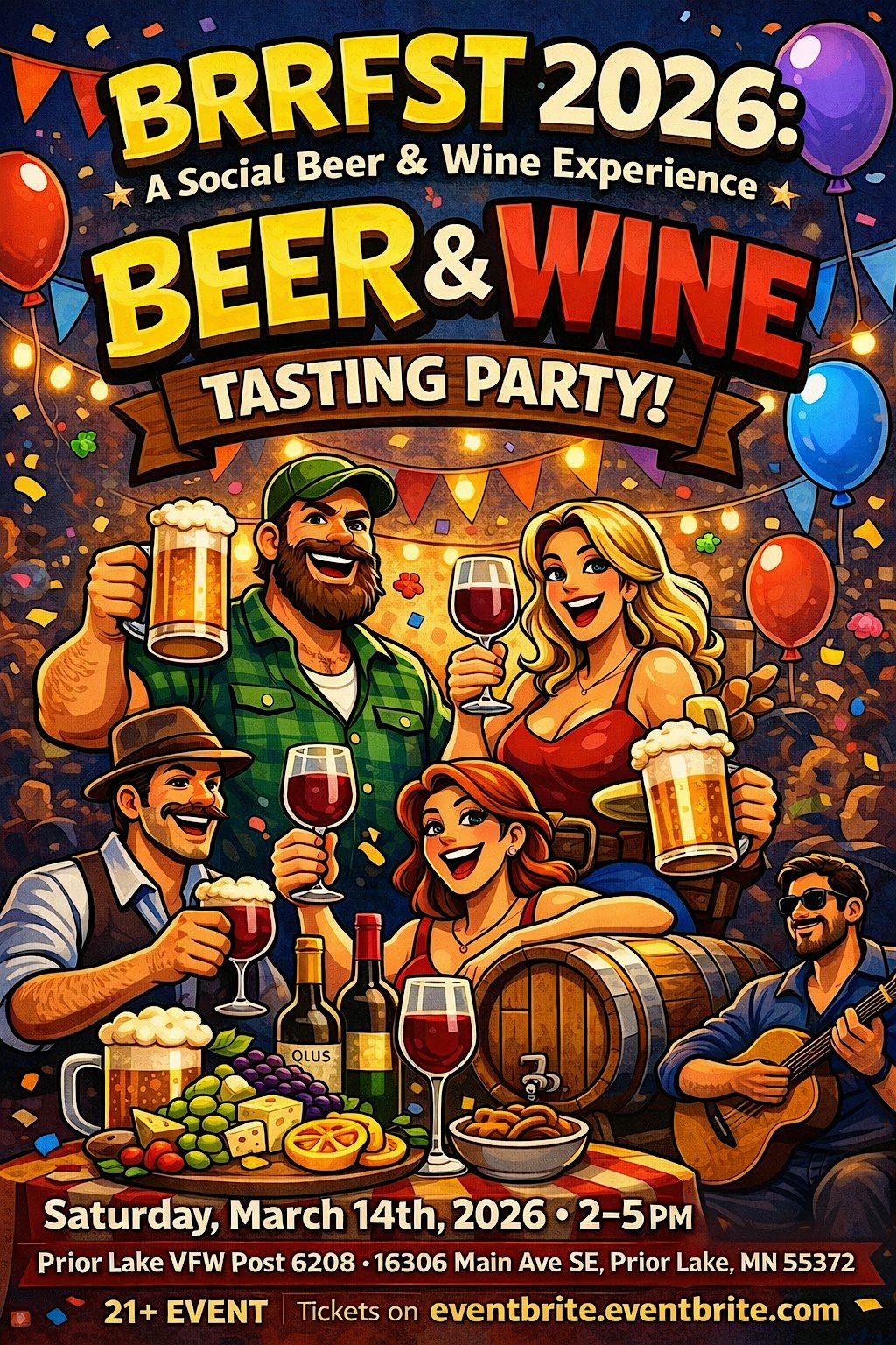 BrrrFEST 2026 is a community-focused beer, wine, and spirits tasting event hosted at the Prior Lake VFW. This 21+ gathering brings together a curated mix of breweries, wineries, and beverage vendors for an afternoon dedicated to sampling, discovery, and good conversation.