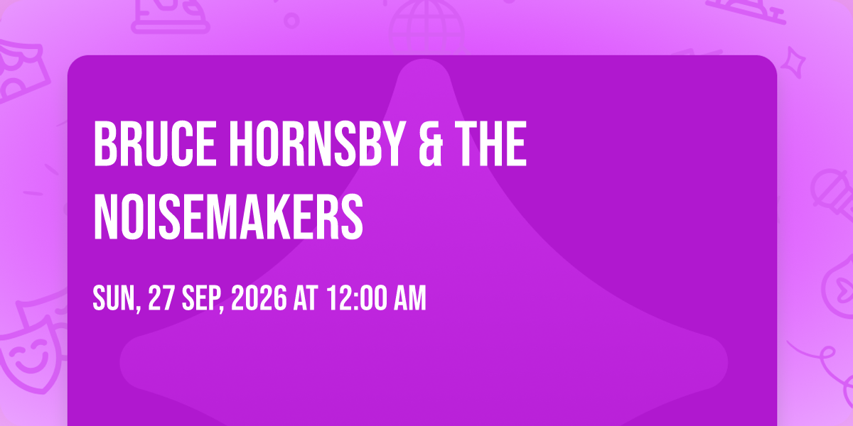 π Location: 44.949, -93.2985β¨ Enter a world of endless possibilities at Bruce Hornsby & The Noisemakers, where every moment tells a story! ποΈ The stunning Uptown Theater - Minneapolis in vibrant Minneapolis, MN transforms into a realm of wonder on September 27th, 2026 at 12:00 AM. π They have crafted an experience that goes beyond the ordinary, combining elements of surprise, delight, and pure entertainment. Every detail has been thoughtfully considered to ensure your journey with us is nothing short of extraordinary. π― Join fellow adventure seekers and memory makers in this celebration of imagination and innovation. π Reserve your spot today and be part of something truly special!