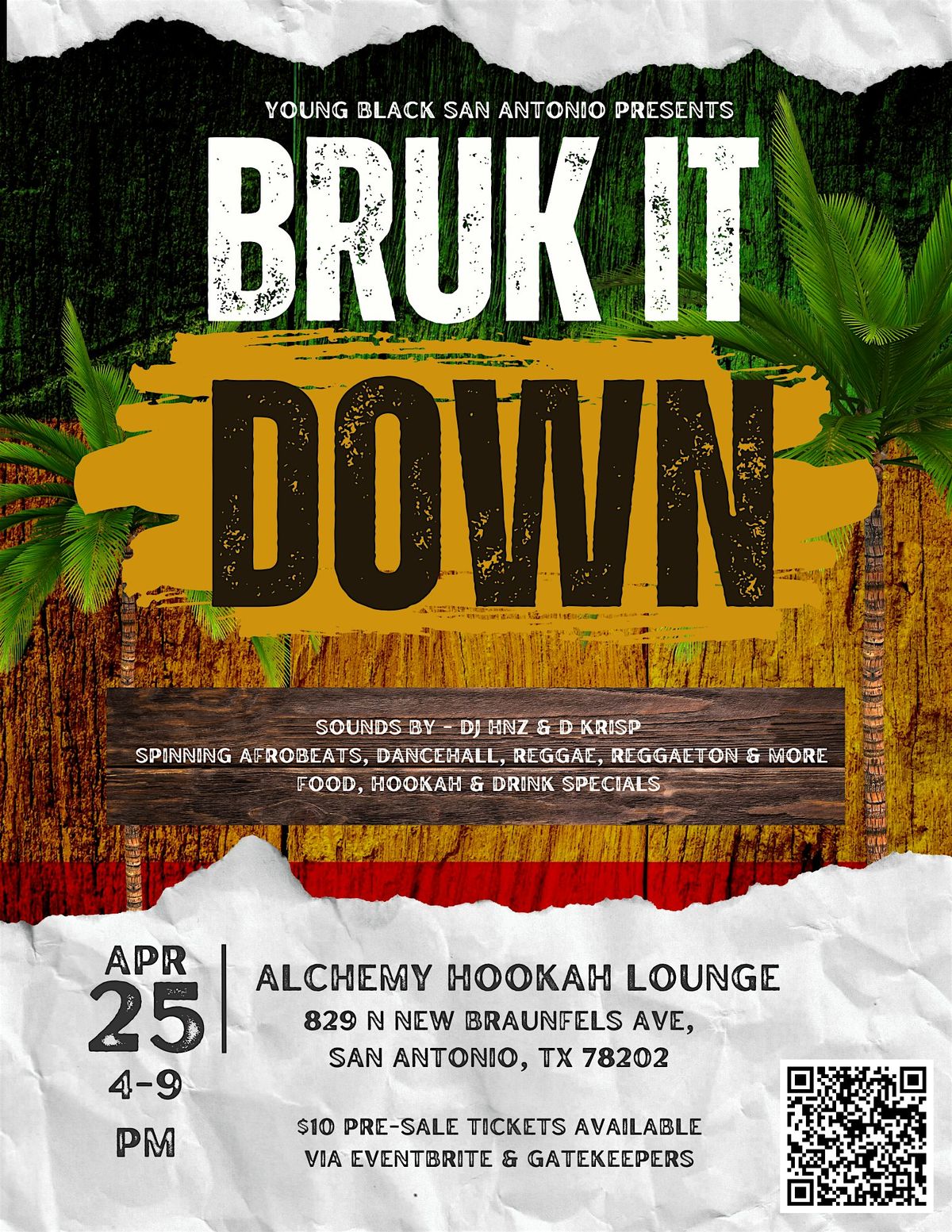 Bruk It Down: The Diaspora Day Party 🌍🔥 April 25th | 4PM – 9PM 📍 Alchemy Hookah Lounge Sounds by D Krisp and DJ HNZ The rhythms that connect the culture all in one place — dancehall, reggae, afrobeats, reggaeton, and more.