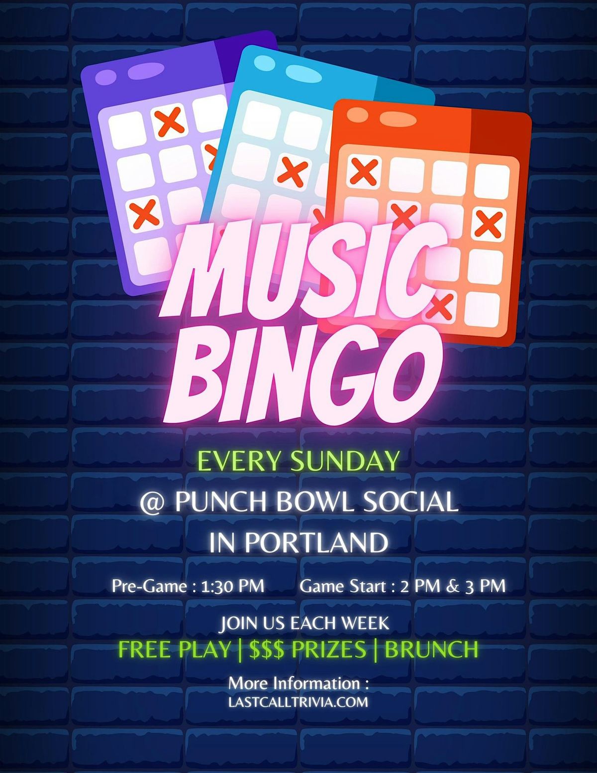Welcome to Brunch & Beats: Music Bingo Madness at Punch Bowl Social! Get ready for a Sunday Funday filled with delicious brunch delights and thrilling Bingo action!