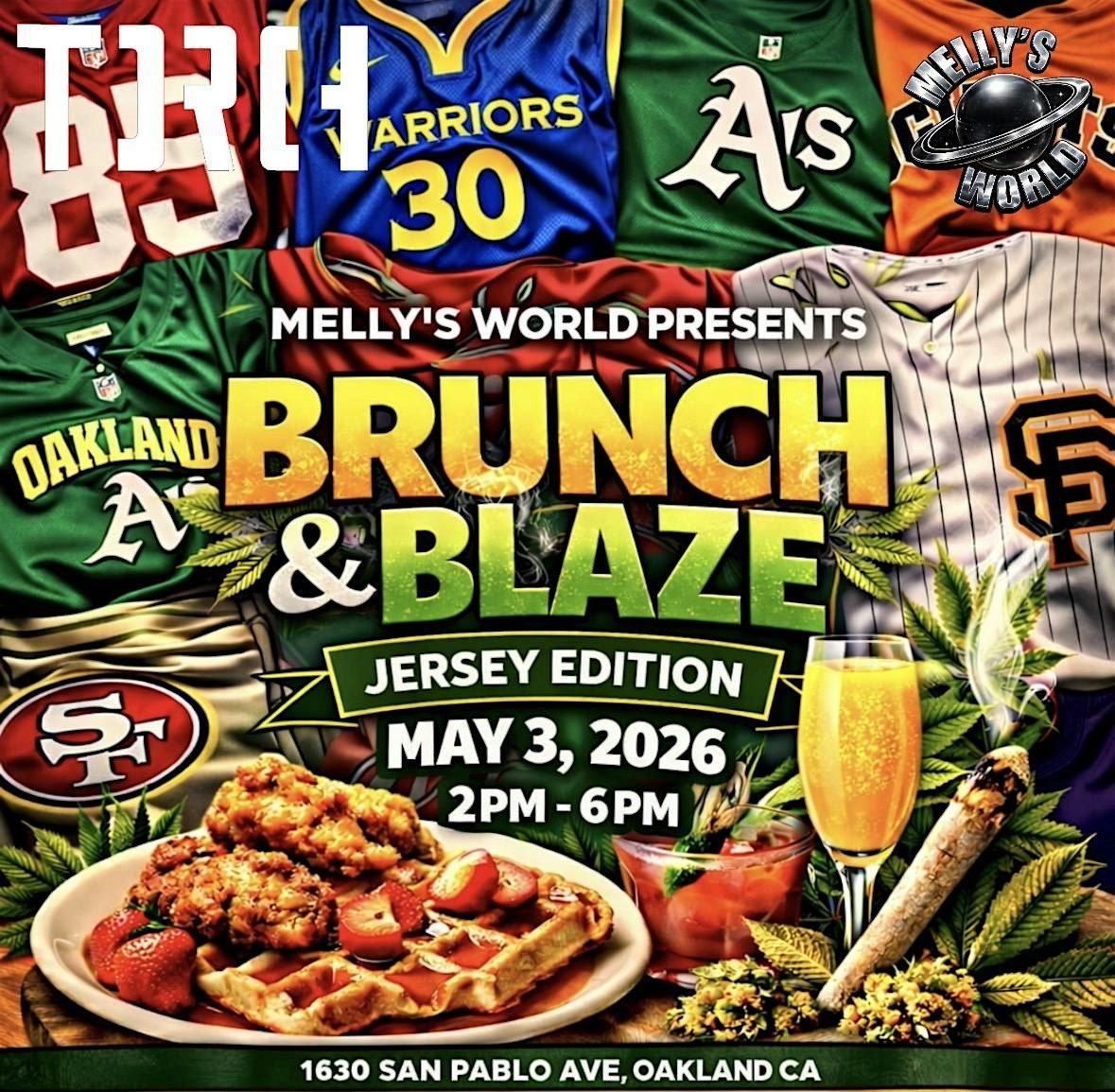 Join us for a chill afternoon at the Torch Oakland Rooftop Bar on May 3, 2026 at 2:00 PM (Pacific Time). It’s all about good vibes, tasty bites, and great company. Whether you’re coming to hang out or blaze up, this Jersey Edition is the perfect way to kick back and enjoy the view. Don’t miss out on an epic rooftop experience with friends old and new! DON'T FORGET TO WEAR YOUR FAVORITE SPORTS TEAM JERSEY!!!!