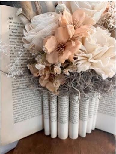 Give yourself or a loved one the GIFT of a mini crafting retreat. Enjoy a light brunch of fresh fruit, pastries, herbal teas, and juice spritzers while you transform a beloved book into a stunning floral centerpiece. In this unique workshop, you'll learn the art of book folding to create a beautiful, vase-like sculpture, then craft a complementary faux floral arrangement to display inside. By the end of the class, you'll not only have a beautiful, finished piece to take home, but also the skills to continue exploring this creative and meditative craft.