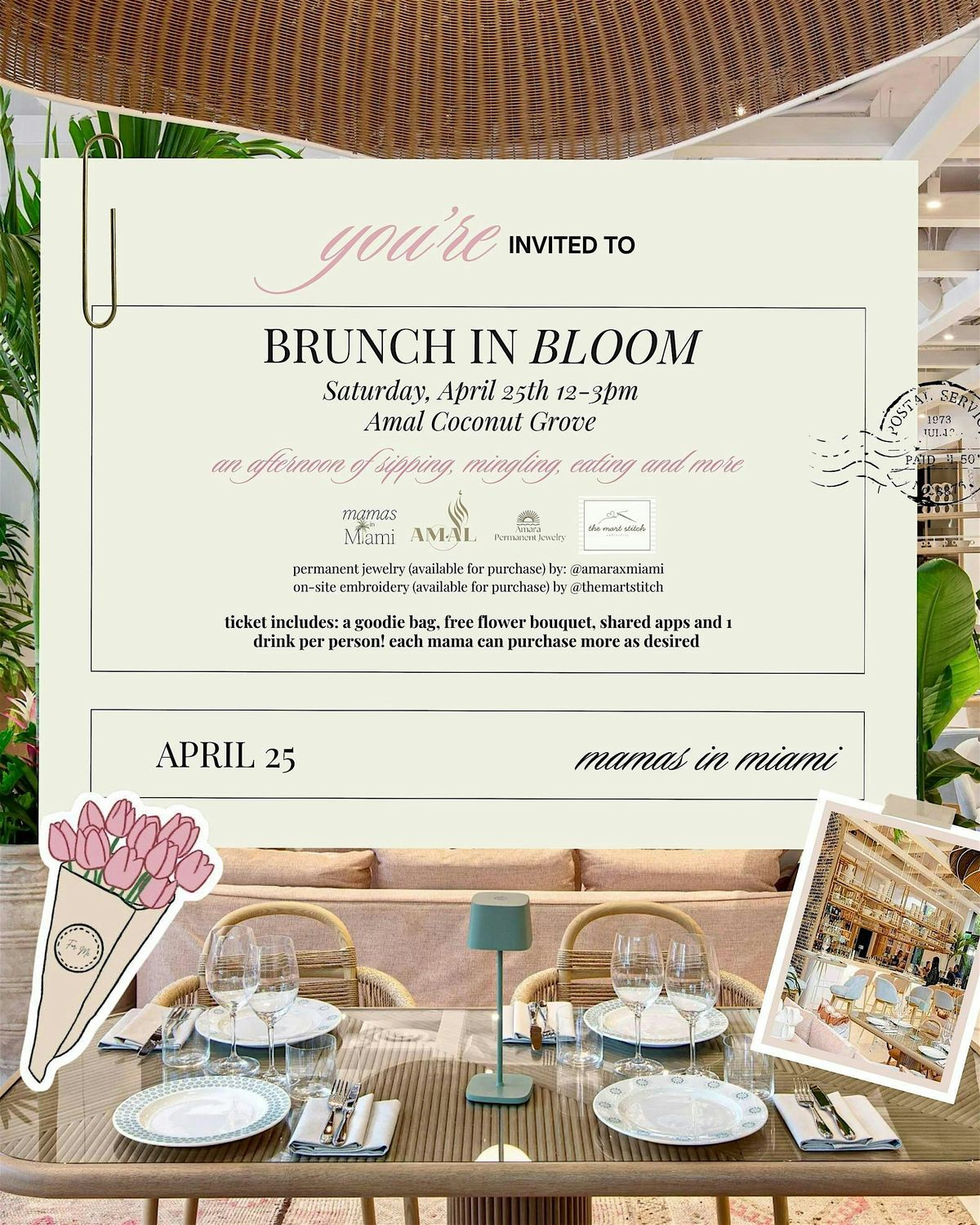 We are so excited to have you at our Brunch in Bloom event! Mamas deserve it all and we would LOVE for you to join us at Amal Coconut Grove for a gorgeous afternoon of photo opps (and professional photos by @cielocinematic!), shopping, sipping, mingling and more.