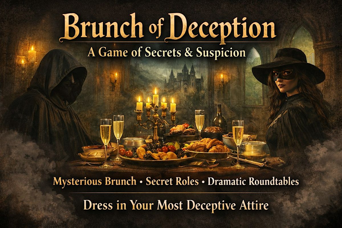 Enjoy a delicious brunch while stepping into a world of strategy, alliances, and betrayal. Throughout the event, guests will take part in interactive challenges, secret roles, and dramatic “roundtable” moments as you work together to uncover who among the group is secretly sabotaging the rest.