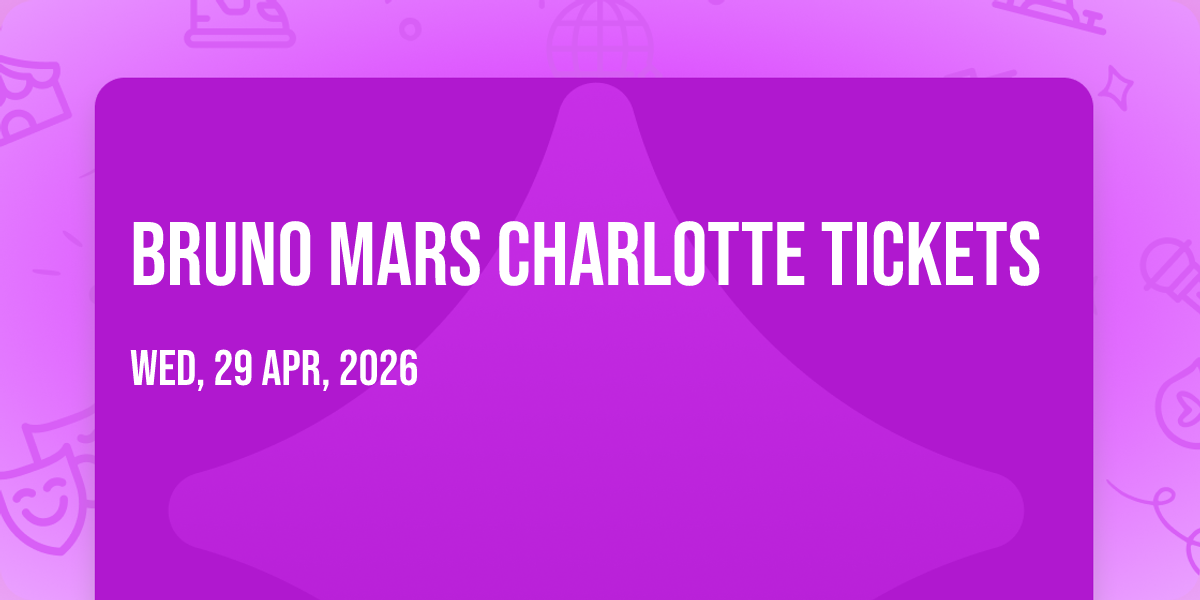 Bruno Mars at Bank of America Stadium🎉 Welcome to Bruno Mars Charlotte Tickets, where dreams come alive and possibilities are endless! 🏛️ Join us at Bank of America Stadium in the heart of Charlotte, NC for an event that defies expectations. 📅 On April 29th, 2026 at 07:00 PM, be part of something truly extraordinary as we bring together innovation, entertainment, and pure magic. ✨ Every aspect has been carefully designed to ensure an unforgettable experience for all our guests. Whether you're seeking adventure, inspiration, or simply a break from the ordinary, this event promises to deliver beyond your wildest dreams. ✨ With tickets available at 168.44 EUR, your journey awaits. 🎊 Prepare for a journey into the extraordinary!