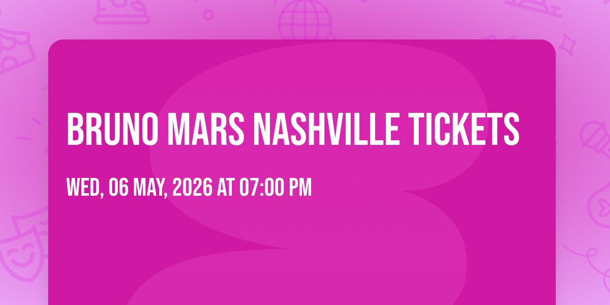 Bruno Mars at Nissan Stadium Nashville🎉 Prepare to be amazed at Bruno Mars Nashville Tickets, the most anticipated gathering of the season! 🌟 Set against the stunning backdrop of Nissan Stadium Nashville in vibrant Nashville, TN, this event promises to redefine your expectations. 📅 Mark your calendars for May 6th, 2026 at 07:00 PM and get ready to immerse yourself in an atmosphere of wonder and excitement. ✨ From the moment you arrive, you'll be transported into a world where memories are made and stories come alive. They have crafted an experience that perfectly harmonizes entertainment, innovation, and community spirit. 🎟️ Tickets are available at 131.19 EUR. 🌈 Join us as we create moments that will be discussed for years!