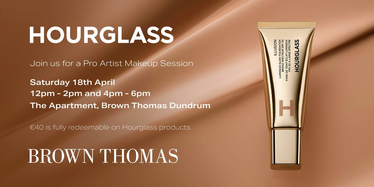 Terms and conditions: €40 ticket is redeemable agaianst Hourglass products on the day of event in Brown Thomas Dundrum store only. Refunds must be requested through the eventbrite platform only. By purchasing ticket(s) for this event you agree (on your own behalf and on behalf of any guests attending with you) to be bound by Brown Thomas Arnotts Terms & Conditions which can be found at