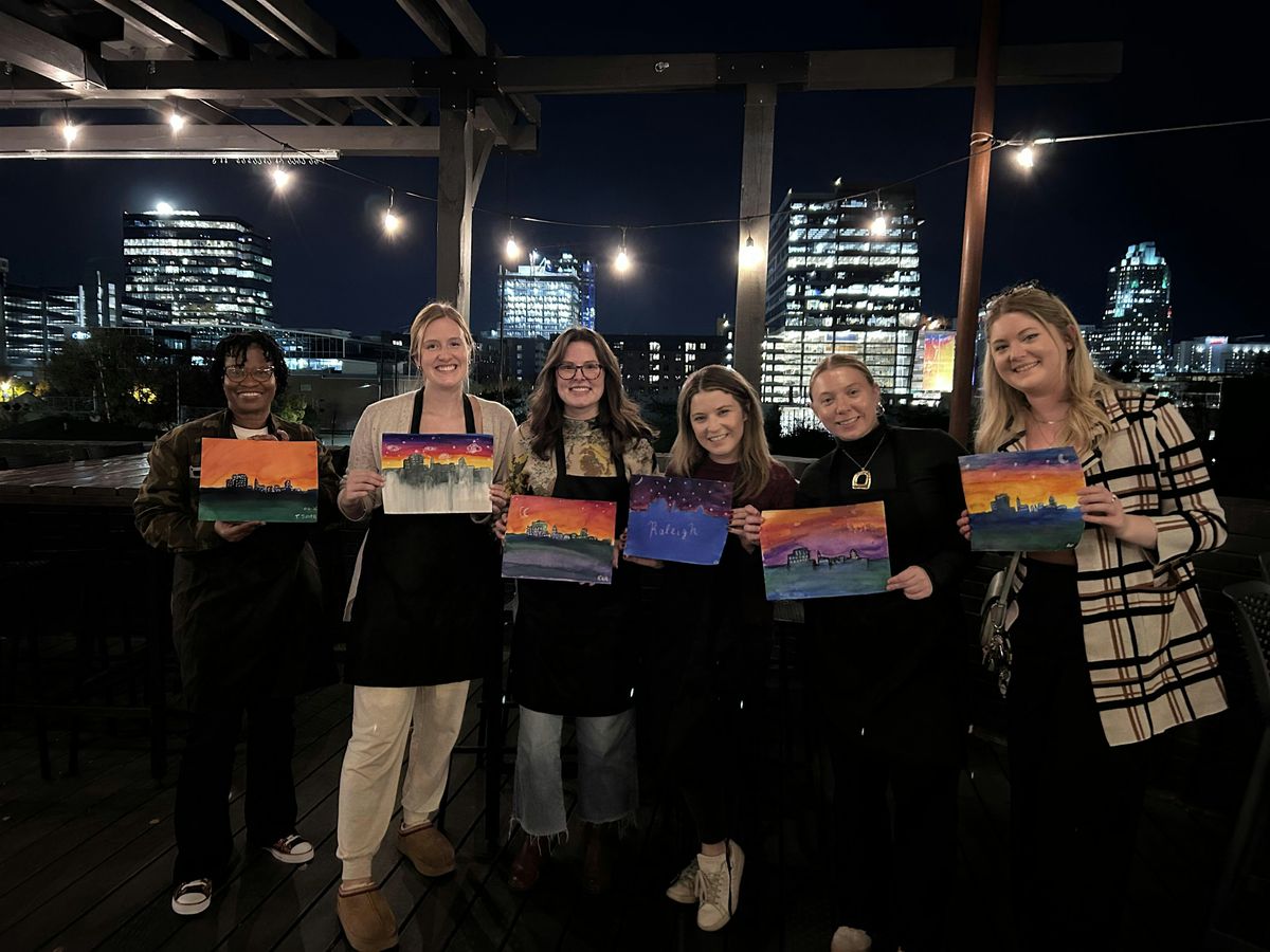 Enjoy a guided watercolor session inspired by Starry Night, set right at Wye Hill Brewery with the best skyline views in Raleigh.