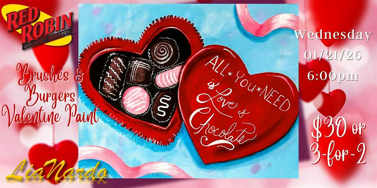 Join LiaNardo Mobile Paint & Sip for a festive Valentine paint night at Red Robin Gourmet Burgers & Brews.