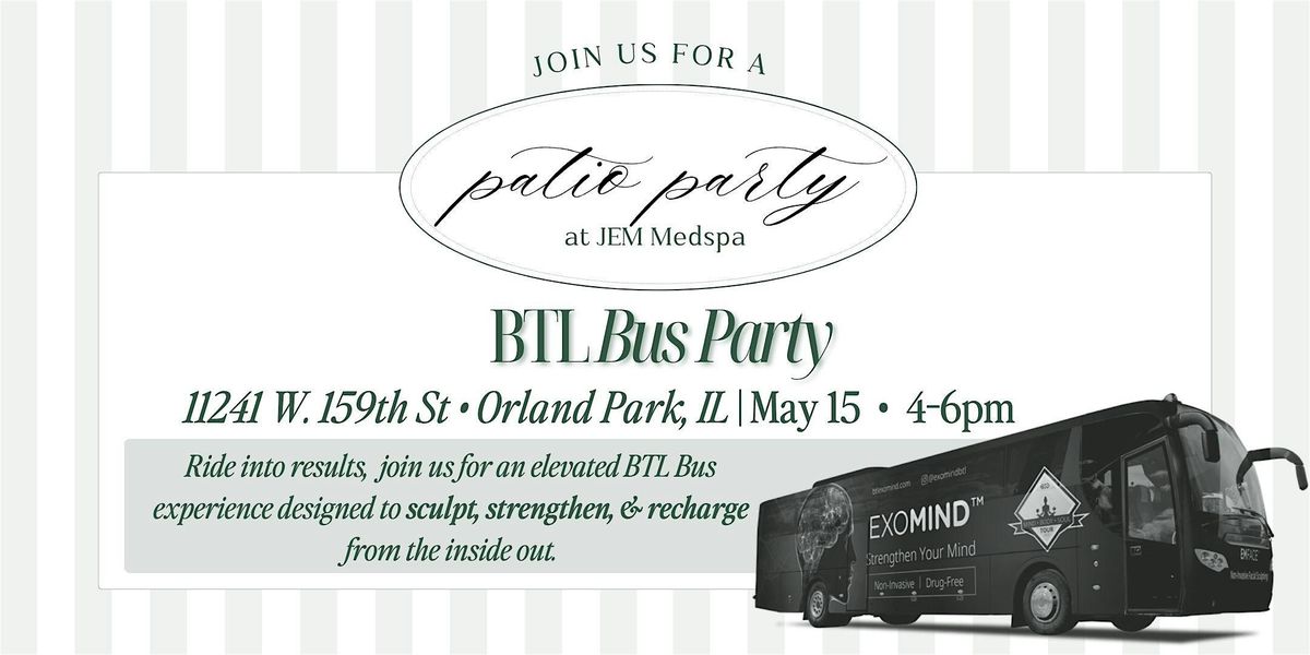 Join us at JEM Medspa Orland Park on May 15th from 4–6 PM for an exclusive BTL Bus experience. Step inside and explore trials of BTL’s most advanced technologies—from body sculpting and muscle toning to facial lifting and wellness optimization.